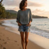 Optez pour cette blouse poncho blanche en voile de coton léger, idéale pour l’été. Sa coupe ample et fluide, ses manches boutonnées et sa broderie artisanale en font une pièce incontournable pour celles qui recherchent un style bohème chic et confortable. Parfaite à porter avec un short, un jean ou en tunique de plage. Un haut respirant, élégant et facile à assortir pour toutes les silhouettes.