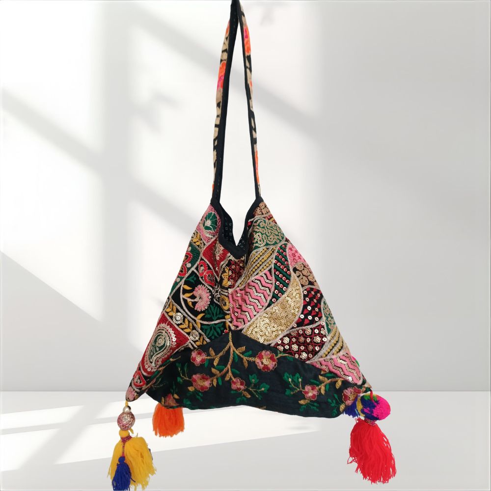 Emportez un peu de bohème partout où vous allez avec notre ravissante « Sac Triangle Fait Main ».