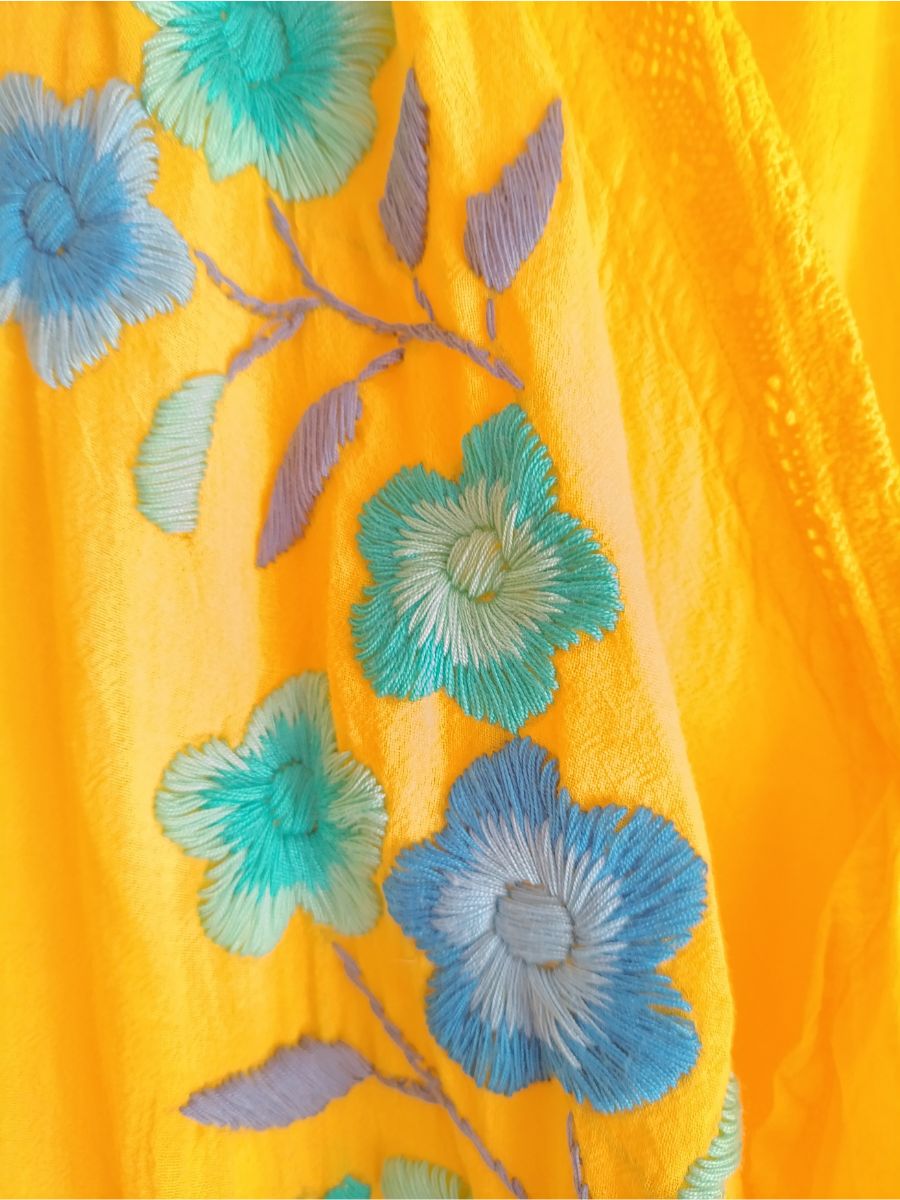 Kimono long artisanal à broderies florales